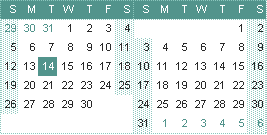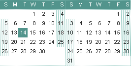 The following screen shot shows the control when the ShowNonMonthDays property is False: