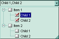 The following sample displays the list of items being checked separated by comma using the control's owner draw feature ( you are simulating a check list editor ):