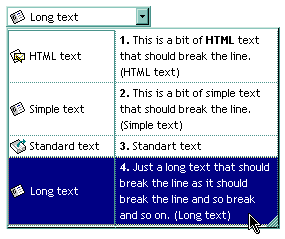 int h = items.AddItem("1. This is a bit of HTML text that should break the line. (HTML text)");