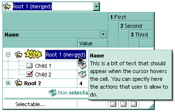 property to specify the cell's tooltip. Use the ShowToolTip