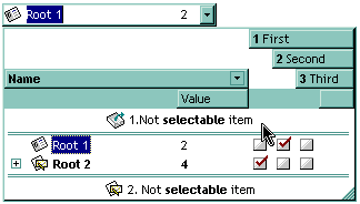 The following C++ sample makes not selectable the first visible item: