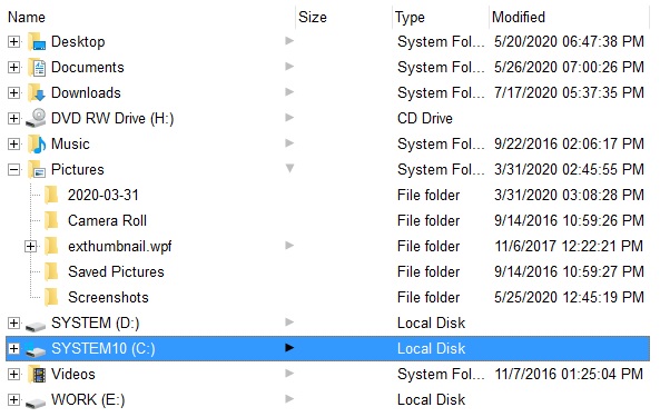 Starting with the version 14.0, the control supports multiple root-folders. The ExploreFromHere property specifies multiple root-folders if they are separated by | or \r\n characters. If the ExploreFromHere entity includes a > character, the characters after indicates the HTML caption to be displayed instead of its default name. For instance: "C:\>" includes the C system driver as a root folder, rather than listing its content, "C:\>System <b>C</b>", includes the system C drive as a root folder with the name System C, c in bold, "C:\|E:\" specifies that the control includes C and E system drives, as root folders, "E:\Exontrol|::{20D04FE0-3AEA-1069-A2D8-08002B30309D}" specifies to include the E:\Exontrol folder and the My Computer system folder.