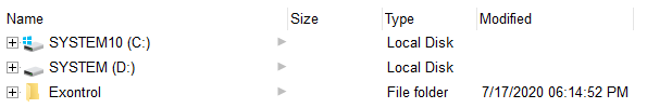 The following screen shots show the control ExploreFromHere property takes different values such as "C:\", "C:\>", "C:\><b>System (C:)</b>" or "C:\|D:\|E:\Exontrol"