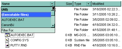 .AddColumnCustomFilter("Name", "(Executable files)", "*.exe|*.com|*.bat")