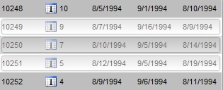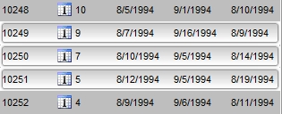 The following screen shot shows the selected items ( 10249, 10250, 10251 ), when the SelBackMode on exOpaque: