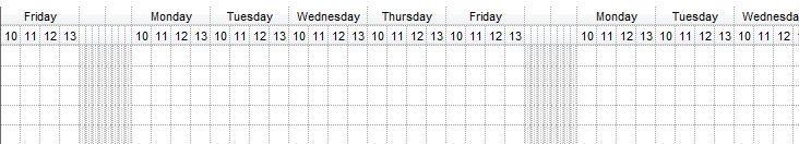 Use the AdjustLevelsToBase property to align the levels to base level. The chart's NonworkingDays property is 65 ( indicates that saturday and sunday are non-working days ) while the NonworkingHours property is 16761855 ( indicates working hour from 10AM to 2 PM ).