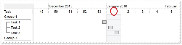 The following screen shot shows the weeks as exISO8601WeekNumber ( exWeek scale ):