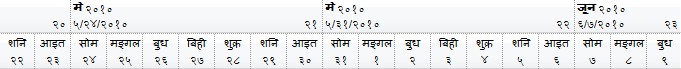 The following screen shot shows the chart's header for Nepali (Nepal) format: