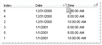 If the control display no sort bar ( SortBarVisible property is False ), the column's header displays the position of the sorting order as shown bellow ( multiple-columns sort ):