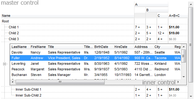 The following C# sample inserts a child item that hosts an inner exgrid/net component: