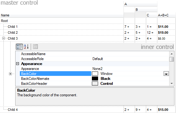 The following screen shot shows the /NET assembly ( master control ) that hosts a System.Windows.Forms.PropertyGrid control from the /NET framework ( inner control ):