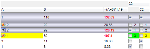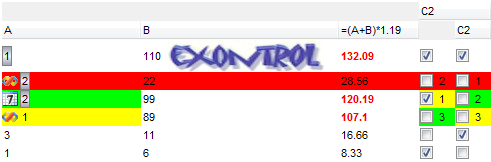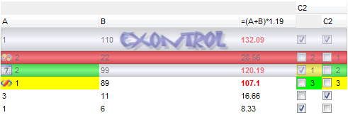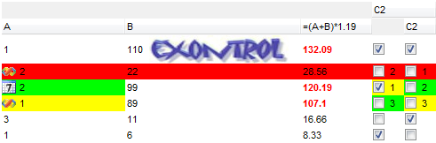 And if the SelBackMode property is set on exTransparent, the selected rows do not change their background/foreground colors as shown bellow: