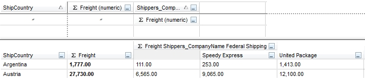 Here's a screen shot of value columns: The Federal Shipping, Speedy Express and United Package columns indicates the values being found on the Shippers_CompanyName column. | |||