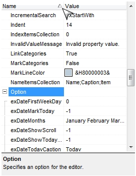 By default, the control's header bar is hidden. The user can use the control's header bar to sort or order the visible columns. If the HeaderVisible property is True, the control shows its header bar. If the header bar is visible, the user is able to resize the columns by dragging the mouse. For instance, you can show the control's header and set the ColumnAutoResize property to False to let the user be able to resize the columns at runtime. Use the BackColorHeader and ForeColorHeader properties to define the background/foreground colors for the control's header bar. Use the ColumnCaption property to change the column's caption. Use the ColumnsAllowSizing property to specify whether the user can resize the columns at run-time, even if the control's header bar is hidden. The HeaderHeight property specifies the height of the control's header bar. Use the HeaderAppearance property to change the appearance of the control's header bar.