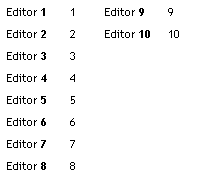 With Record1 .BeginUpdate .FieldWidth = 96 .Layout = exLeftToRight Dim i As Long For i = 1 To 10 With .Add("Editor <b>" & i & "</b>", EditType) .Value = i End With Next .EndUpdate End With
