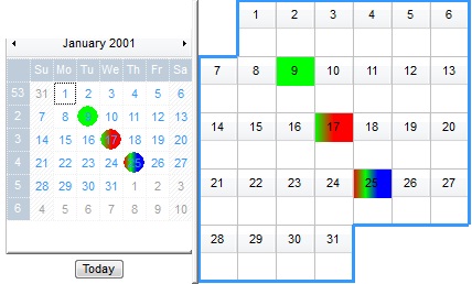 The following screen shot shows a few dates highlighted with