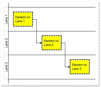 The following screen shot shows three horizontal lanes ( Lane 1, Lane 2 and Lane 3 ) and three elements assigned to each lane.