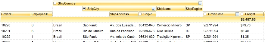 By default, the ExpandColumns property is "". The ExpandColumns property specifies the columns to be shown/hidden when a column is expanded or collapsed. The ExpandColumns property can include the index of the current column, which indicates that the column is visible no matter if the column is expanded or collapsed. In other words, the Expanded/ExpandColumns properties provides expandable header. The Index property specifies the index of the column. The Expanded property specifies whether a column is expanded or collapsed. The DisplayExpandButton property indicates whether the +/- expanding/collapsing button is shown in the column's header. The HasButtons property specifies how the +/- buttons are shown.