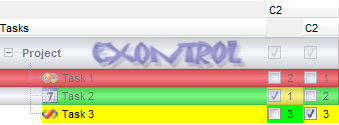 The following screen shot shows the first three items selected, while the SelBackMode property is exGrid: